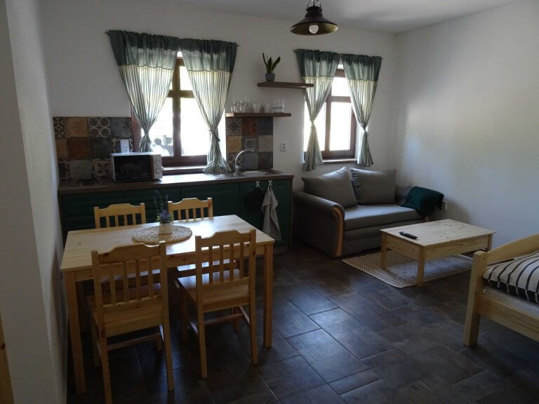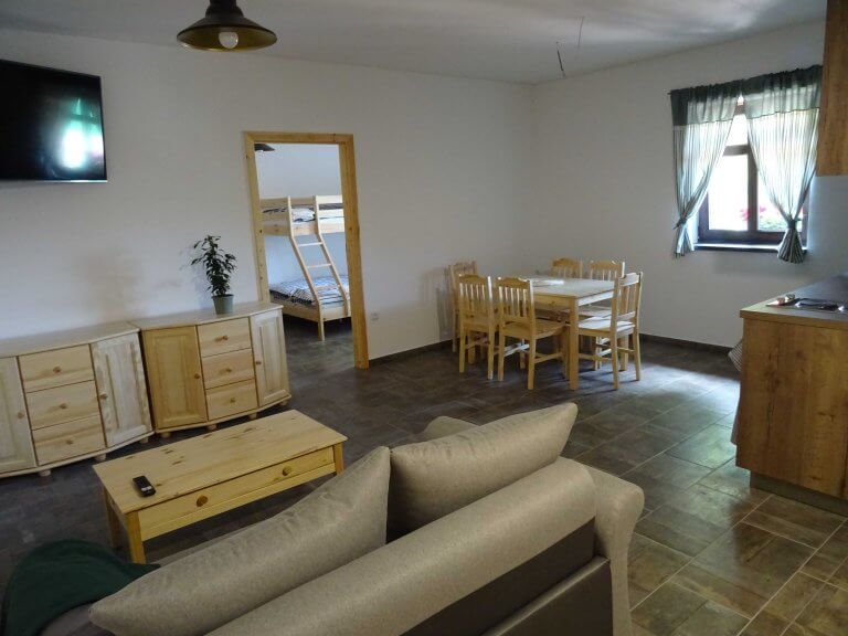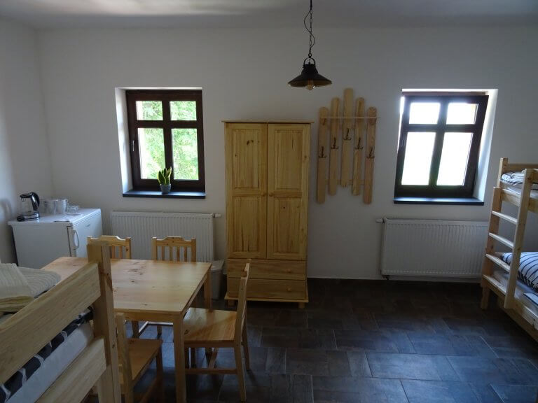 - ubytování ve 4 apartmánech a 2 pokojích s celkovou kapacitou 31 lůžek. Apartmány mají kuchyňky, vlastní sociální zařízení a velkoplošné TV