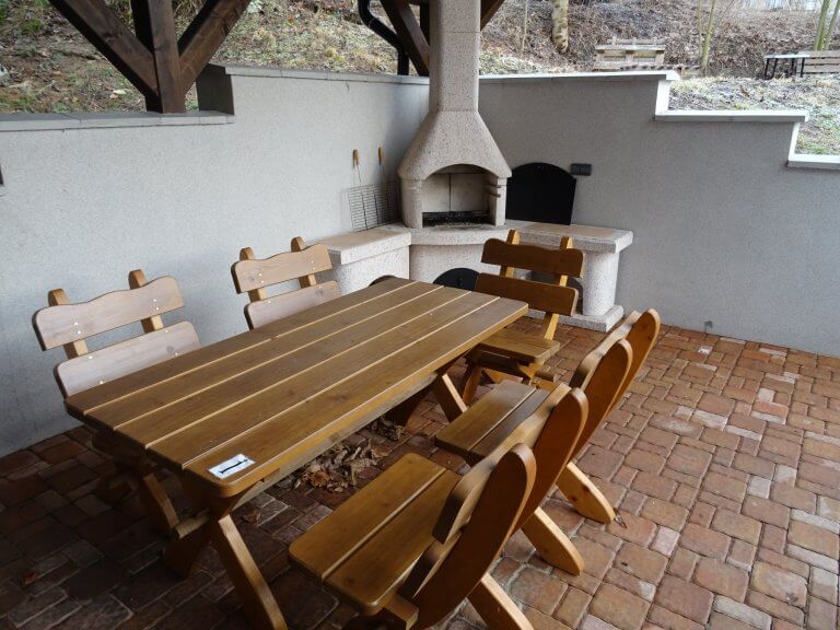 - Hosté si mohou na dvou venkovních grilech ogrilovat své suroviny, nebo můžeme nabídnout zamražené špekáčky/klobásy hořčici, kečup a pečivo.